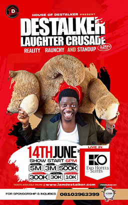 Oghenekowhoyan onaibe desmond also known as, destalker can be best described as one of the funniest and prolific motivational comedian we have in nigeria. At the birthday gala of one of the sitting governors in nigeria, comedian bovi referred to destalker as the crudest nigerian comedian before calling him up for his performance. Destalker is also a public speaker, em-cee, actor and online social media influencer